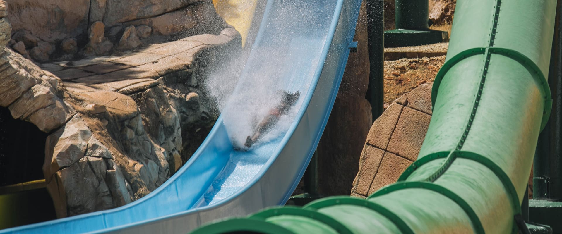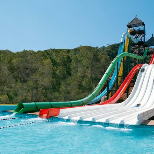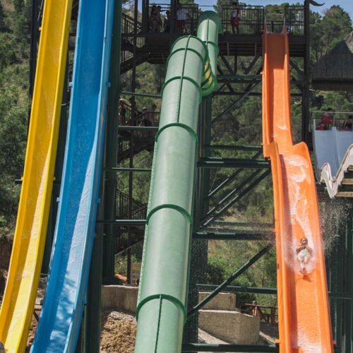 For safety reasons, the minimum height allowed to use the attraction is, for the green and orange slide, 1.20 metres (4 feet). For the yellow and blue slide, the minimum height is 1.25 metres (4 feet 2 inches).