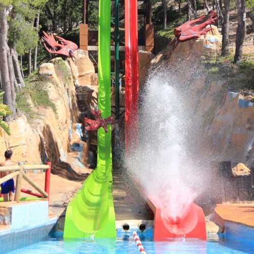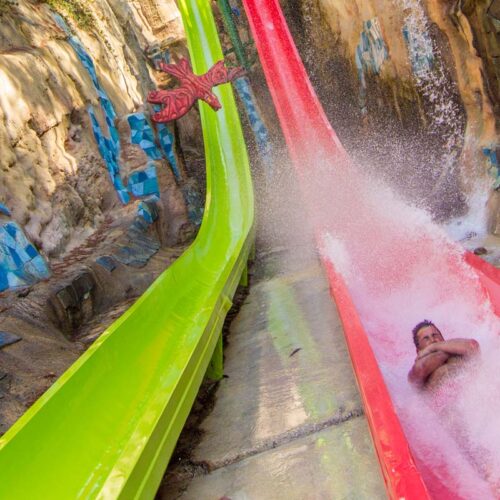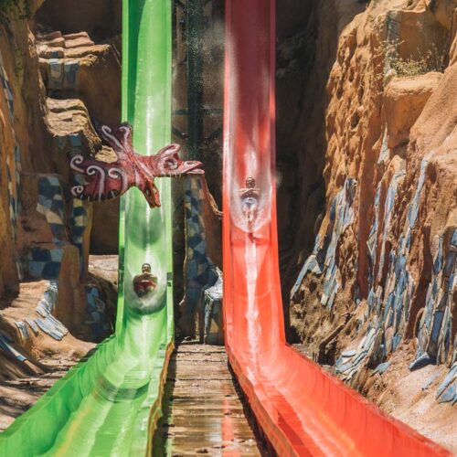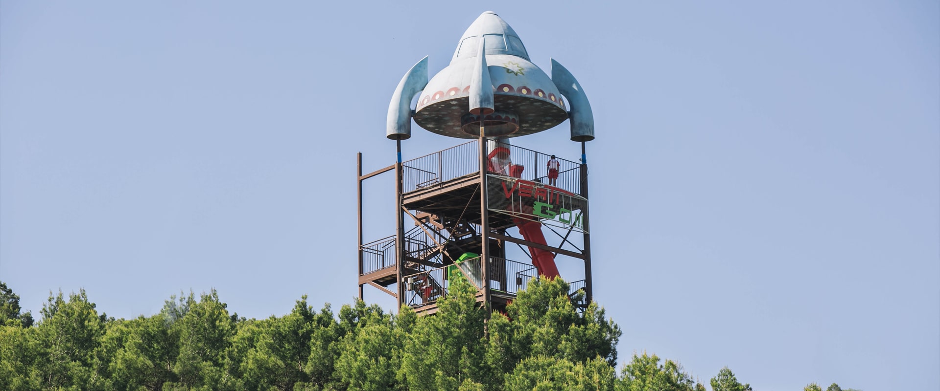 Verti-Go is the name of this spectacular set of two slides, 28 and 33 meters high, making it one of the tallest capsule slides in the world.